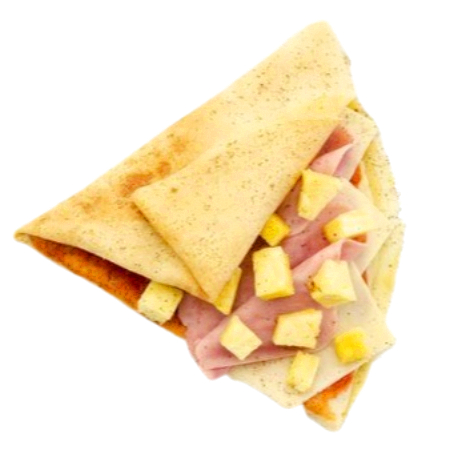 Deliciosa crepa con piña, jamón y queso oaxaca, opcional chipotle.