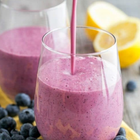 Refrescante bebida a base de agua mineral con saborizante de mora azul y perlas moleculares.