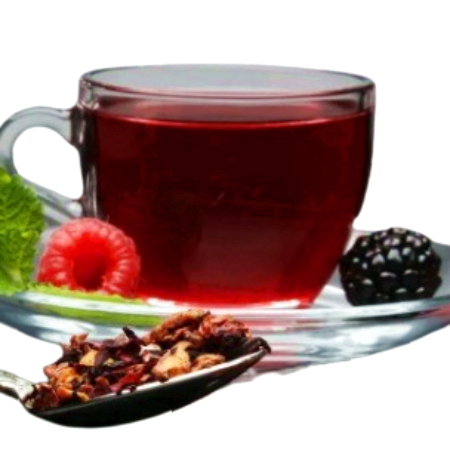 Te frio o caliente de frutos rojos con jamaica y arándanos.