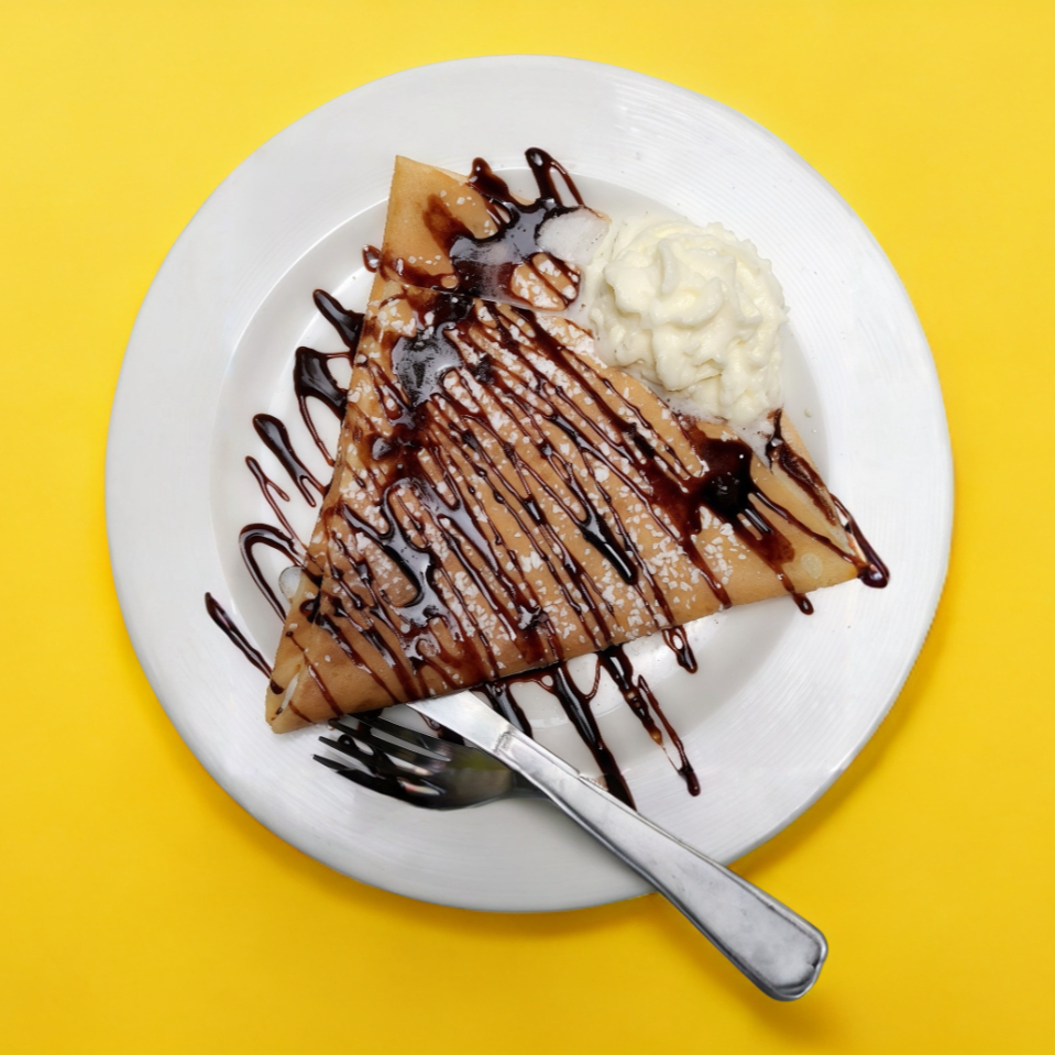 Deliciososa crepa sencilla de 40cm acompallada con un untable de su elección