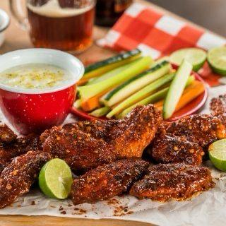 Alitas perfectamente Cocidas y preparadas con Tajin, Maggie y Salsa Inglesa