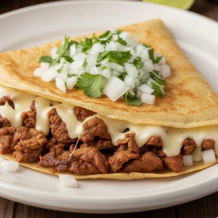 Pastor, queso, cilantro y cebolla