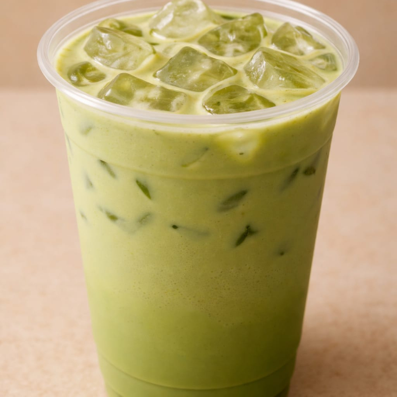 Bebida líquida hecha de Té Verde, Matcha con Leche Fría y Hielo Suave y Energizante