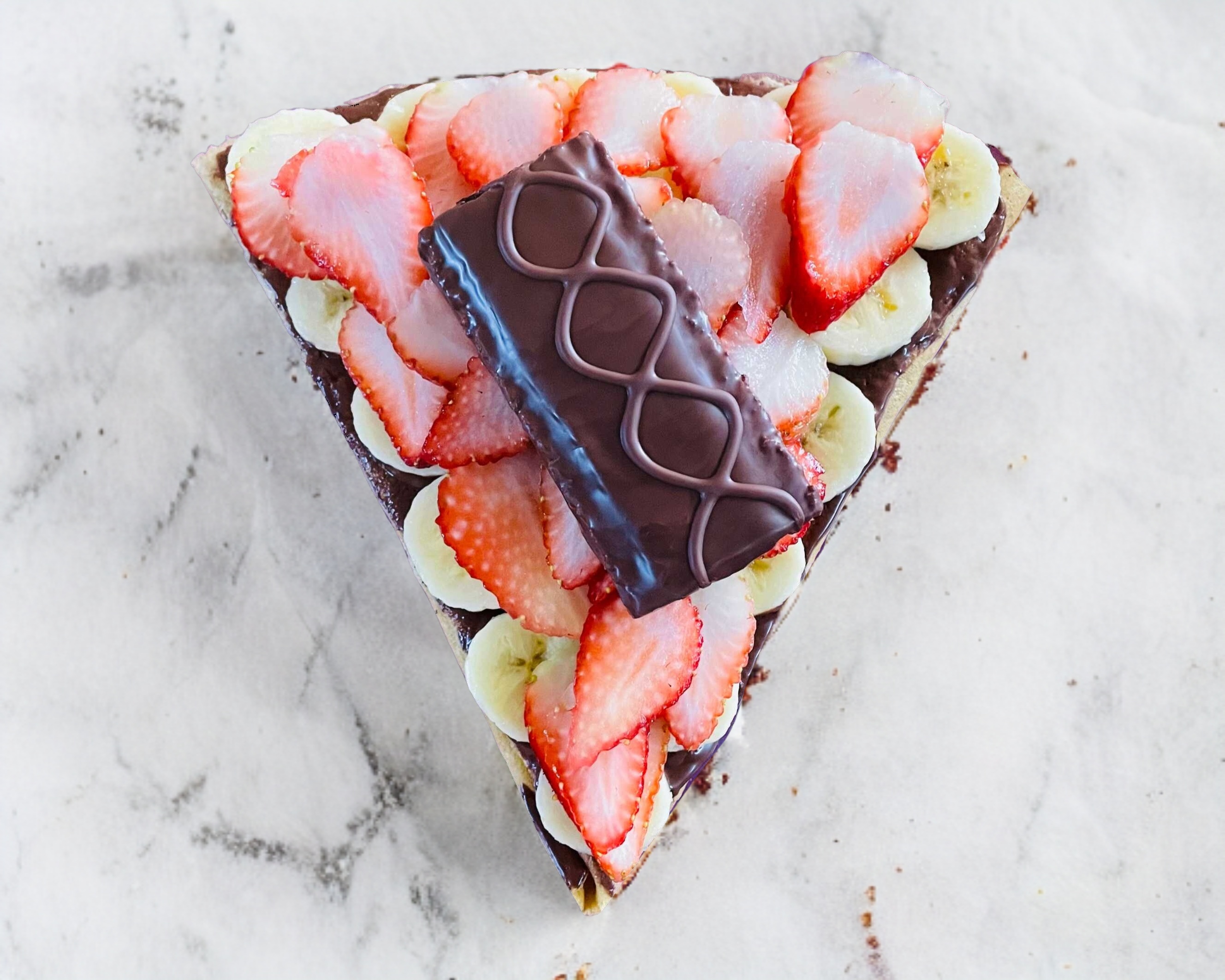 Crepa cubierta de Nutella, plátano, fresas y chocolate Kinder Delice.