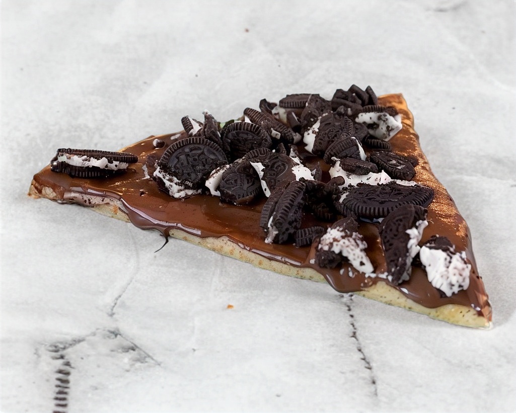 Waffle cubierto de Nutella y galleta Oreo.