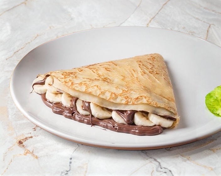 1 crepa rellena de philadelphia cubierta de nutella y platano 17cm