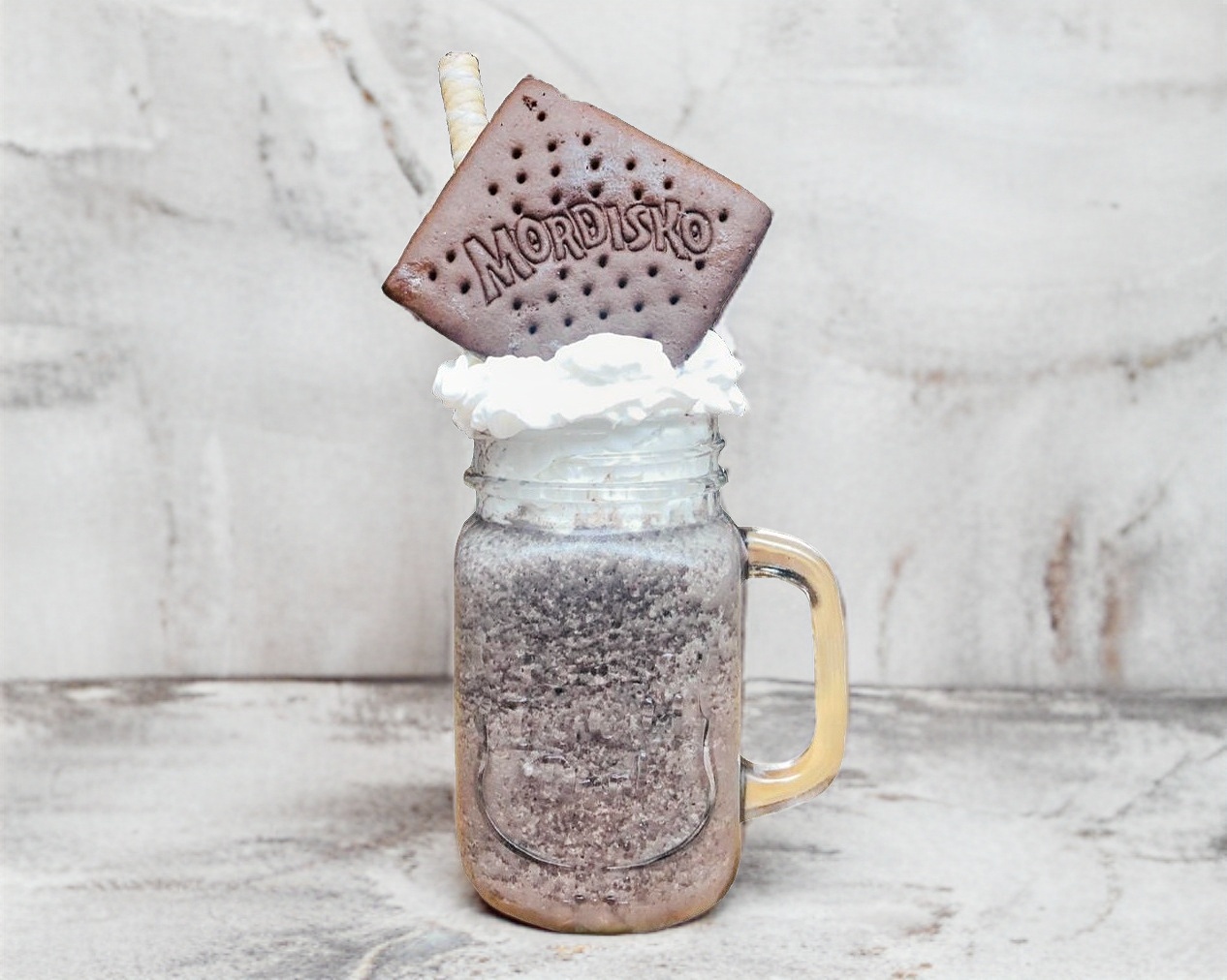 Frappe sabor galleta oreo acompañado de crema batida y mordisko