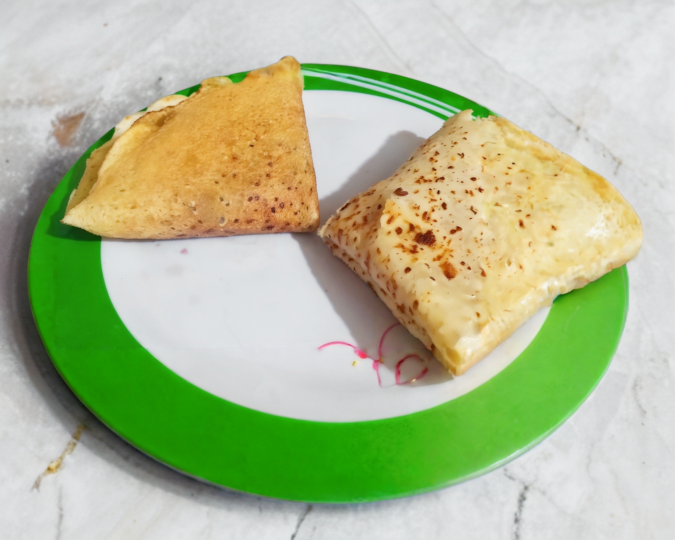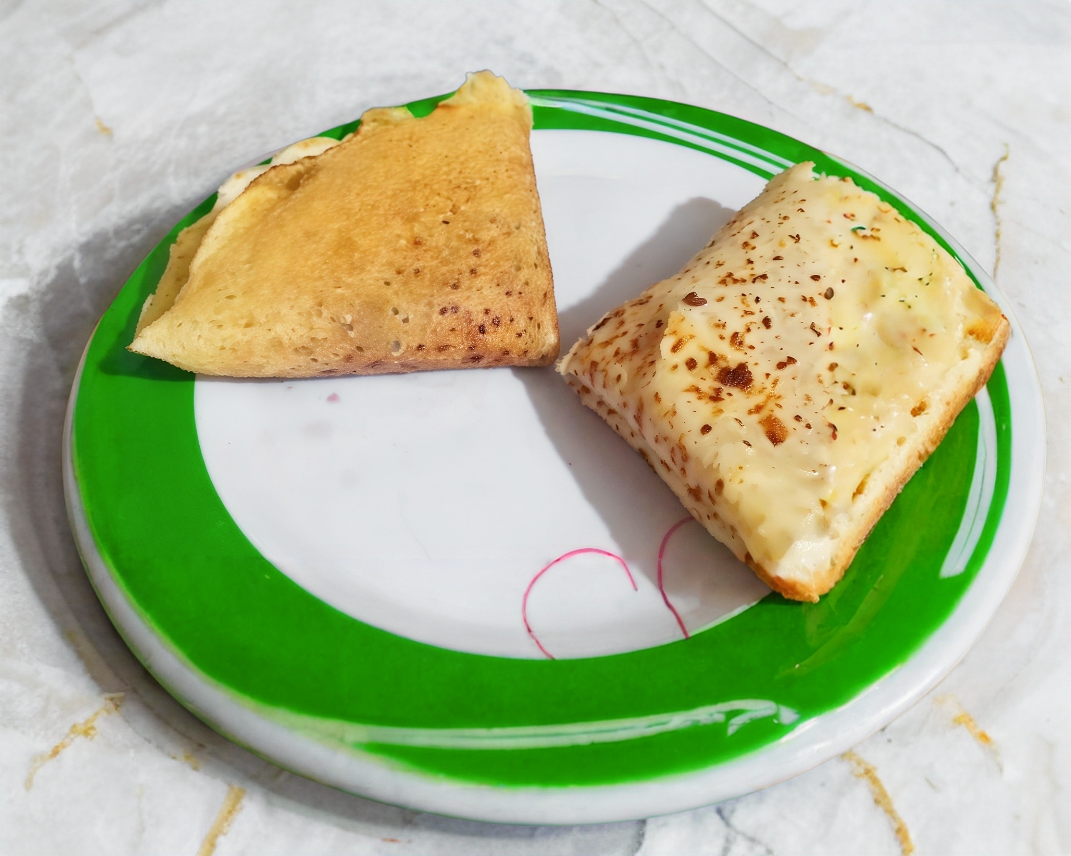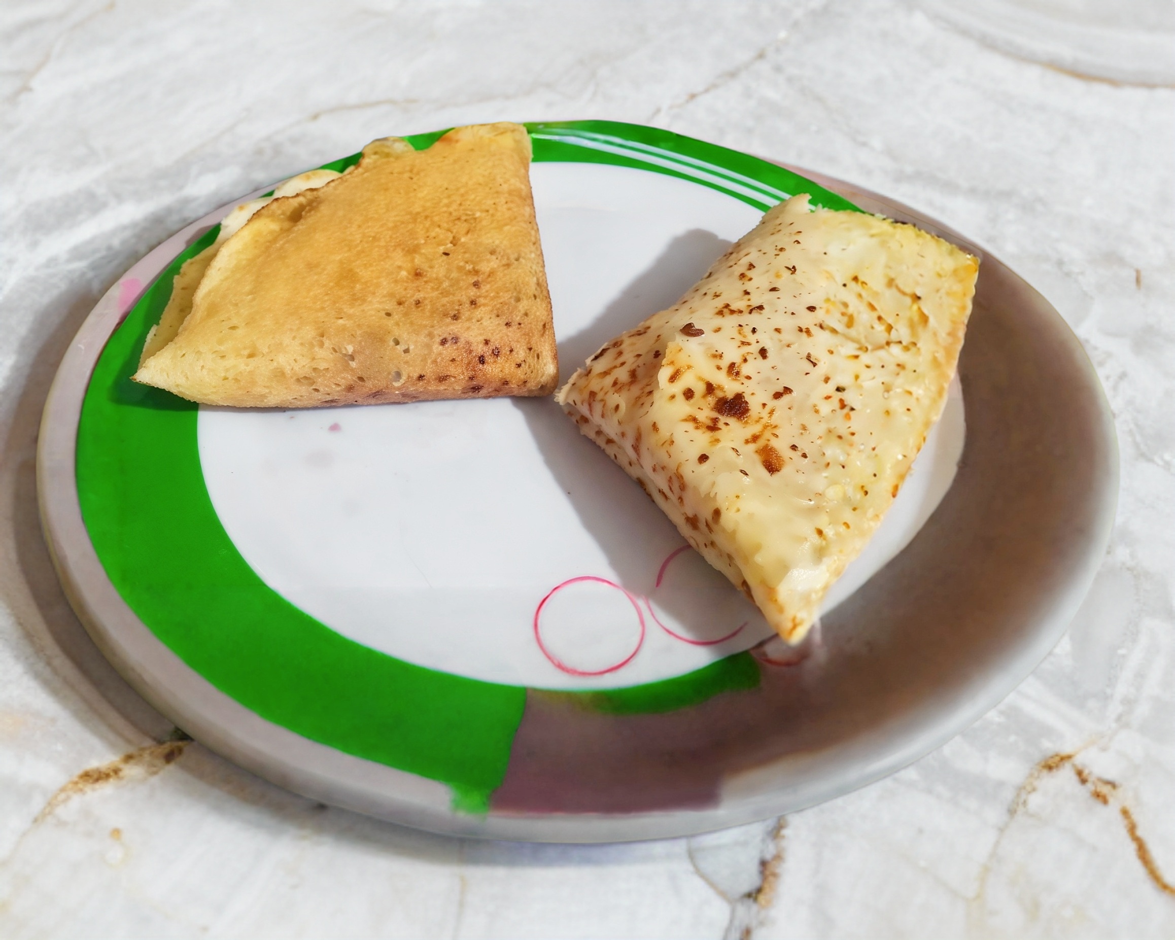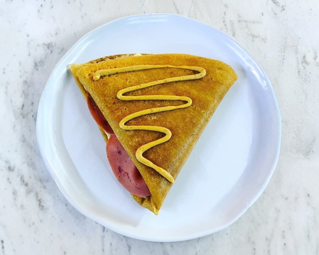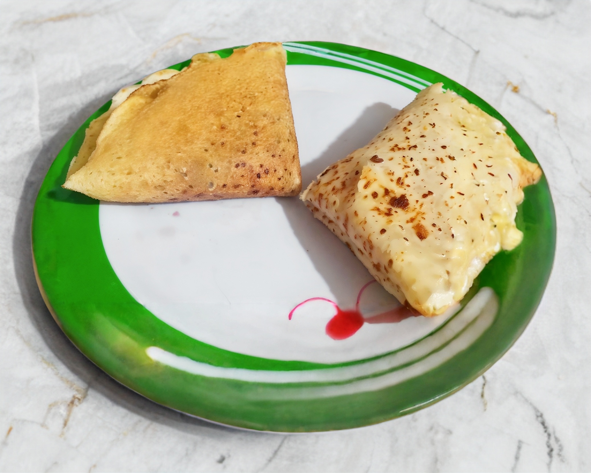 Crepa rellena de queso Philadelphia, queso manchego y jamón.