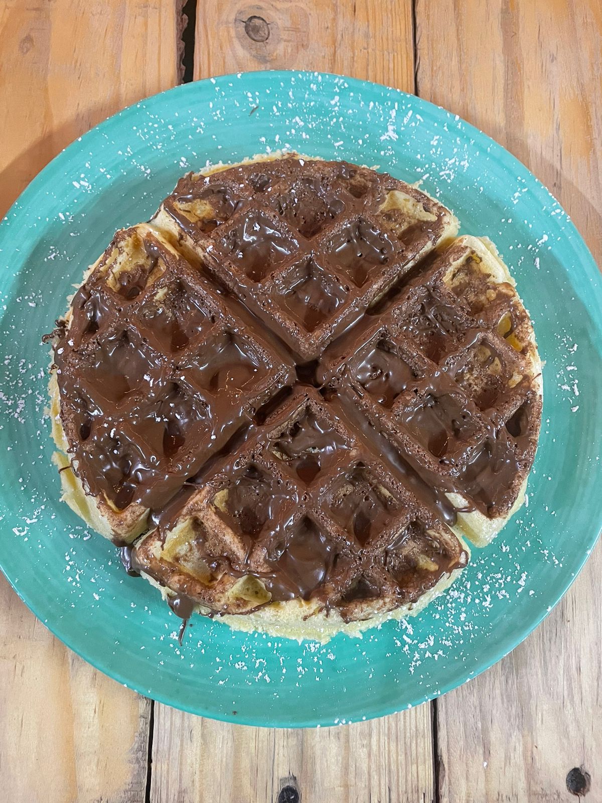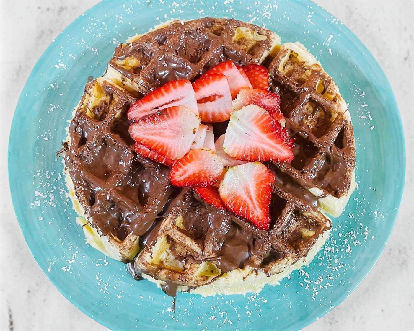 Rellena de queso Philadelphia, cubierta de Nutella y plátano.