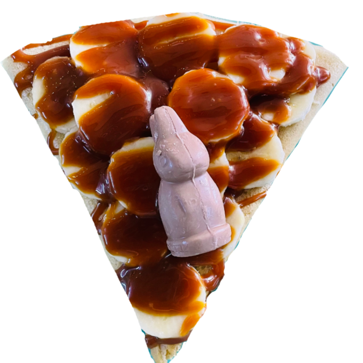 Crepa cubierta de cajeta, platano y chocolate conejo turin.