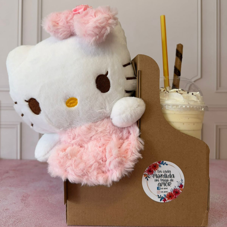 Frappe de 500ml y peluche tematico de kitty.