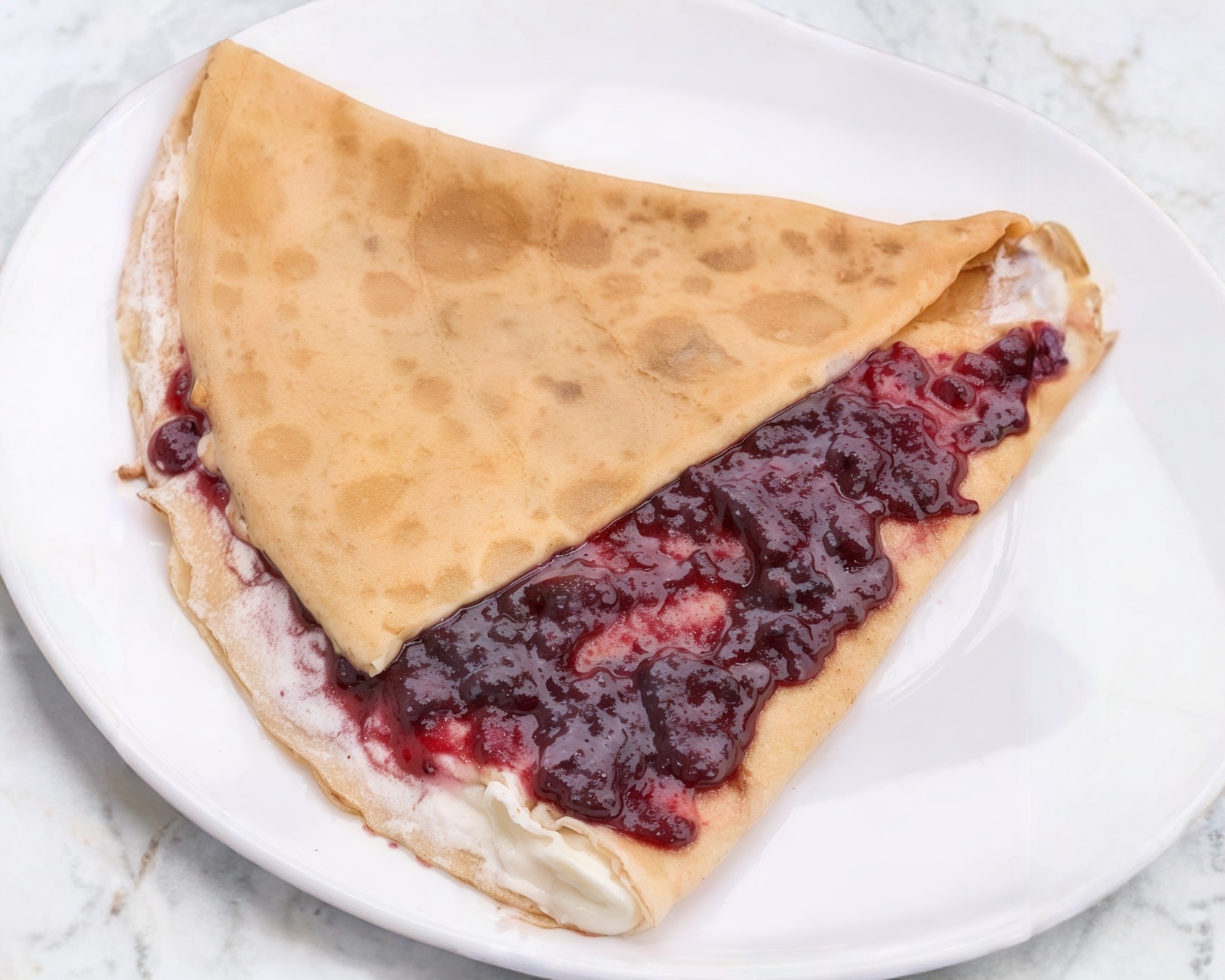 Crepa rellena de queso philadelphia y mermelada de zarzamora