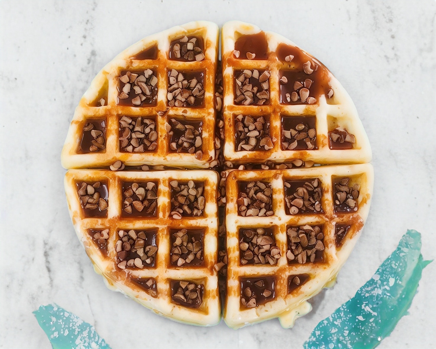 waffle cubierto de cajeta y nuez