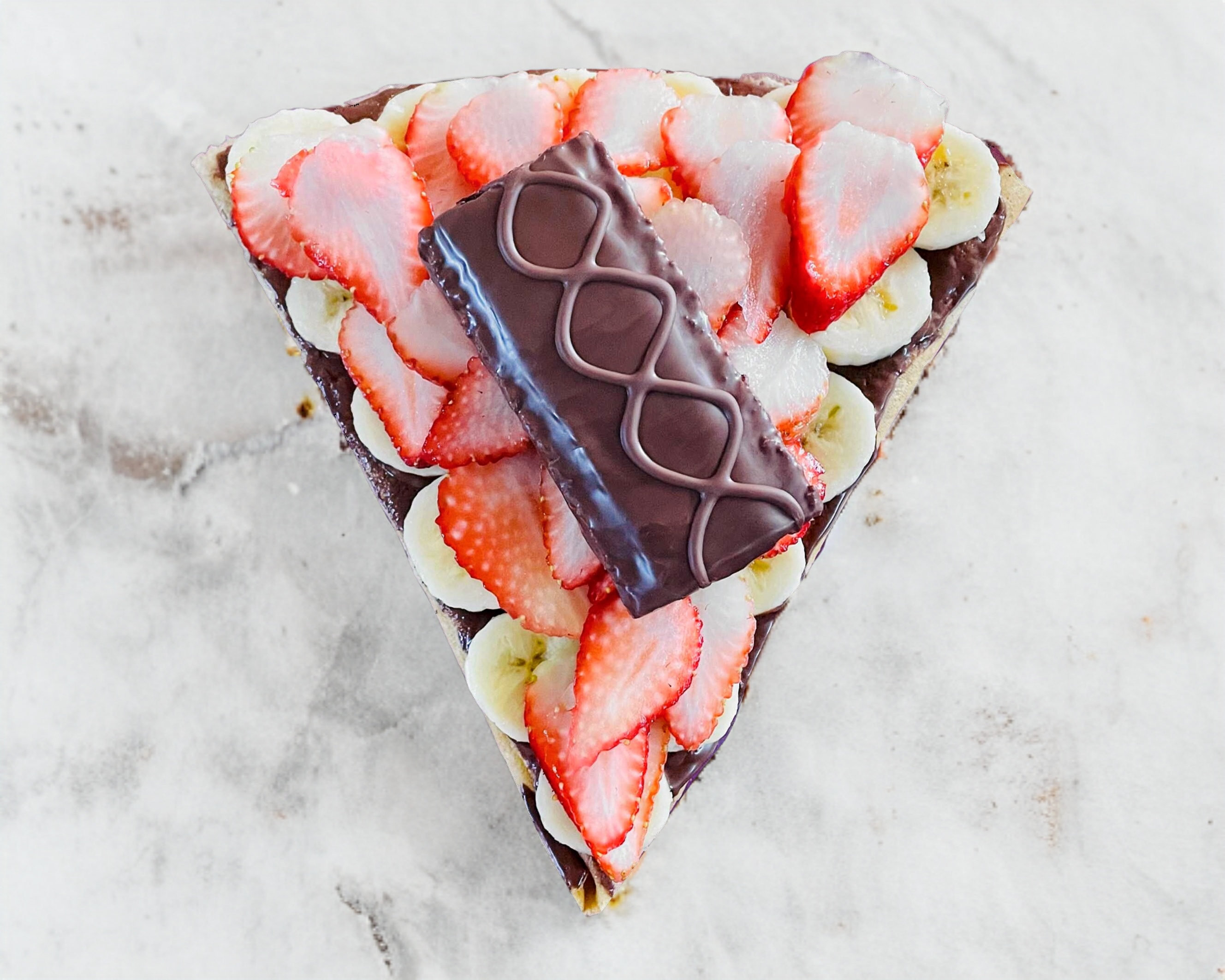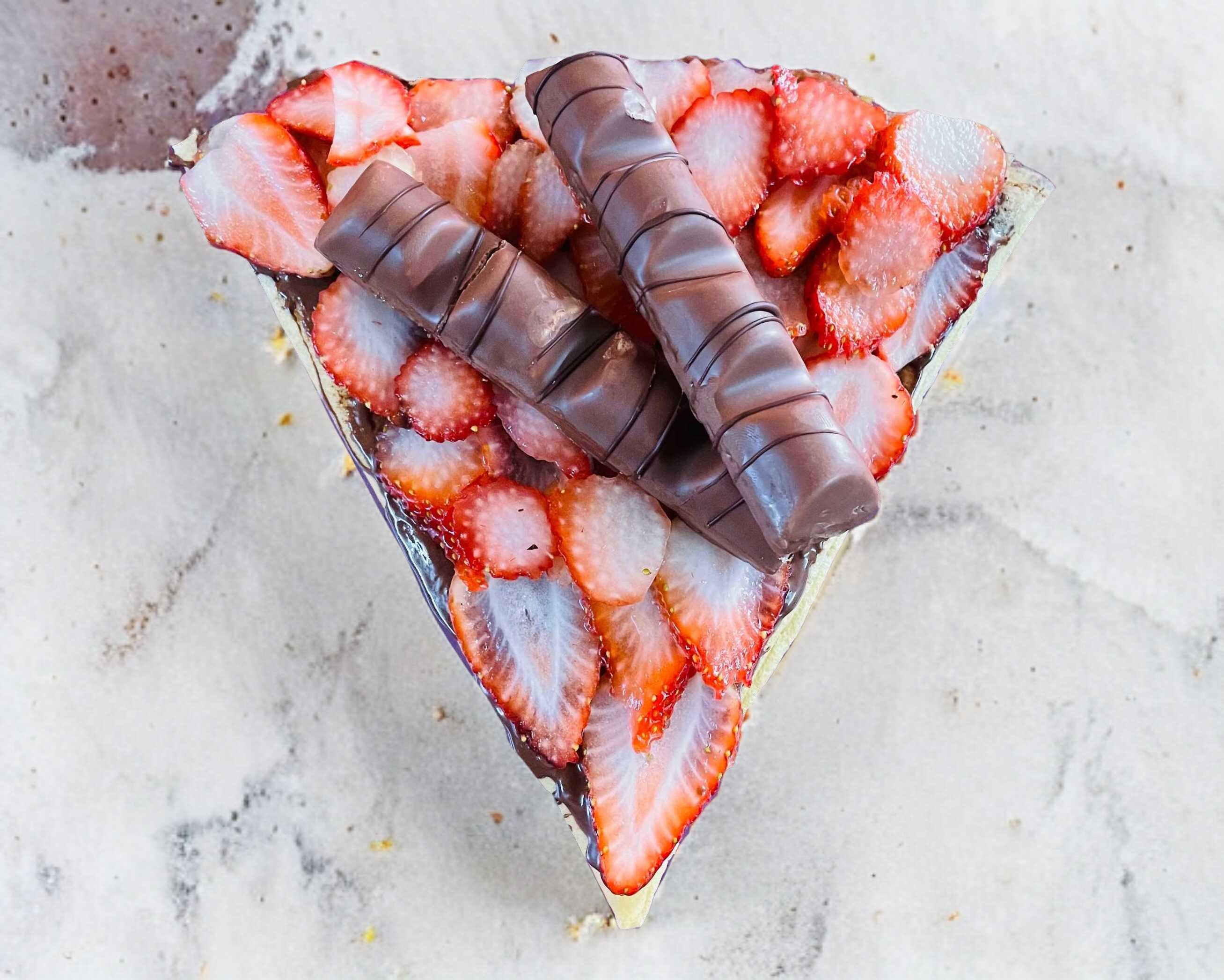 crepa cubierta de nutella, platano, fresas y chocolate kinder delice