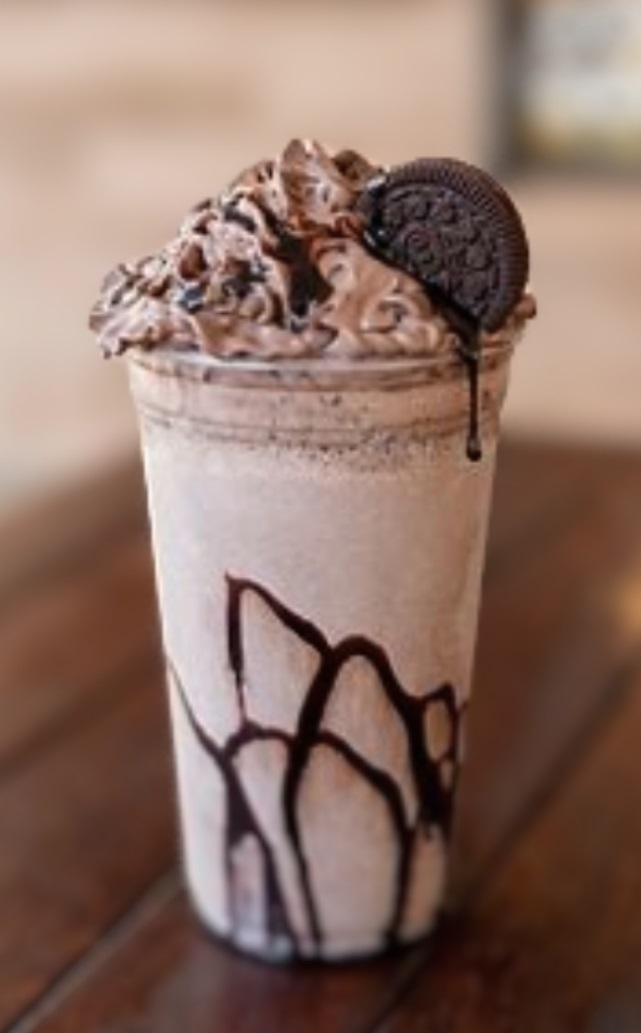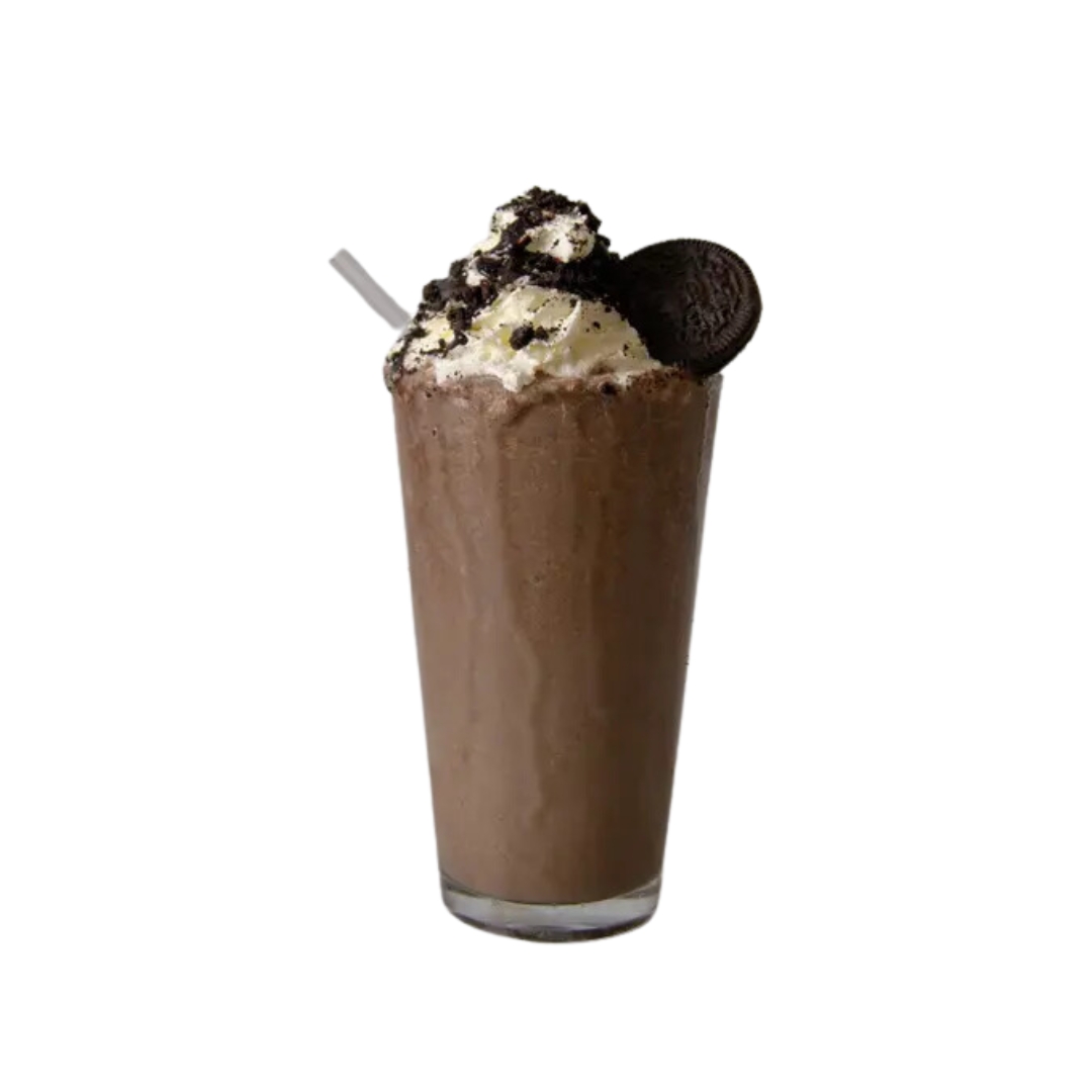 Frappe sabor galleta oreo acompañado de crema batida y mordisko