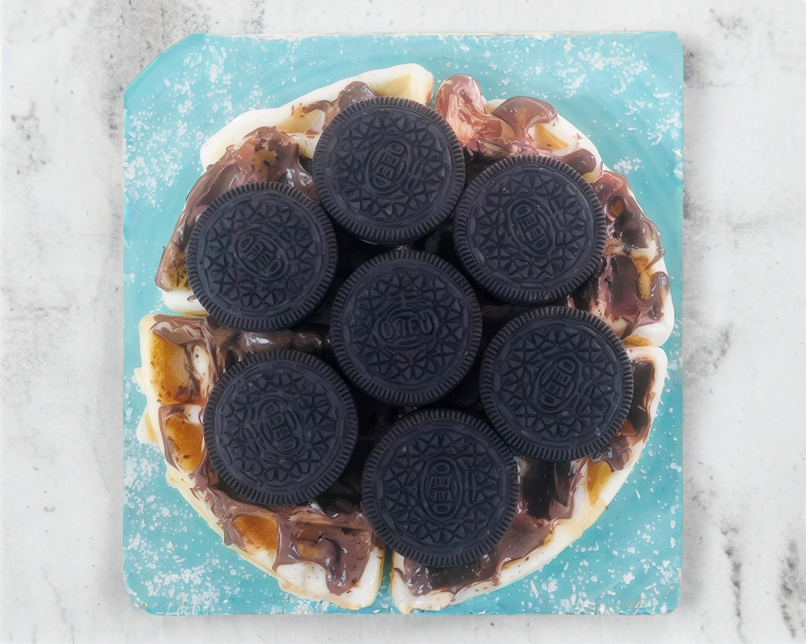 waffle cubierto de nutella y galleta oreo