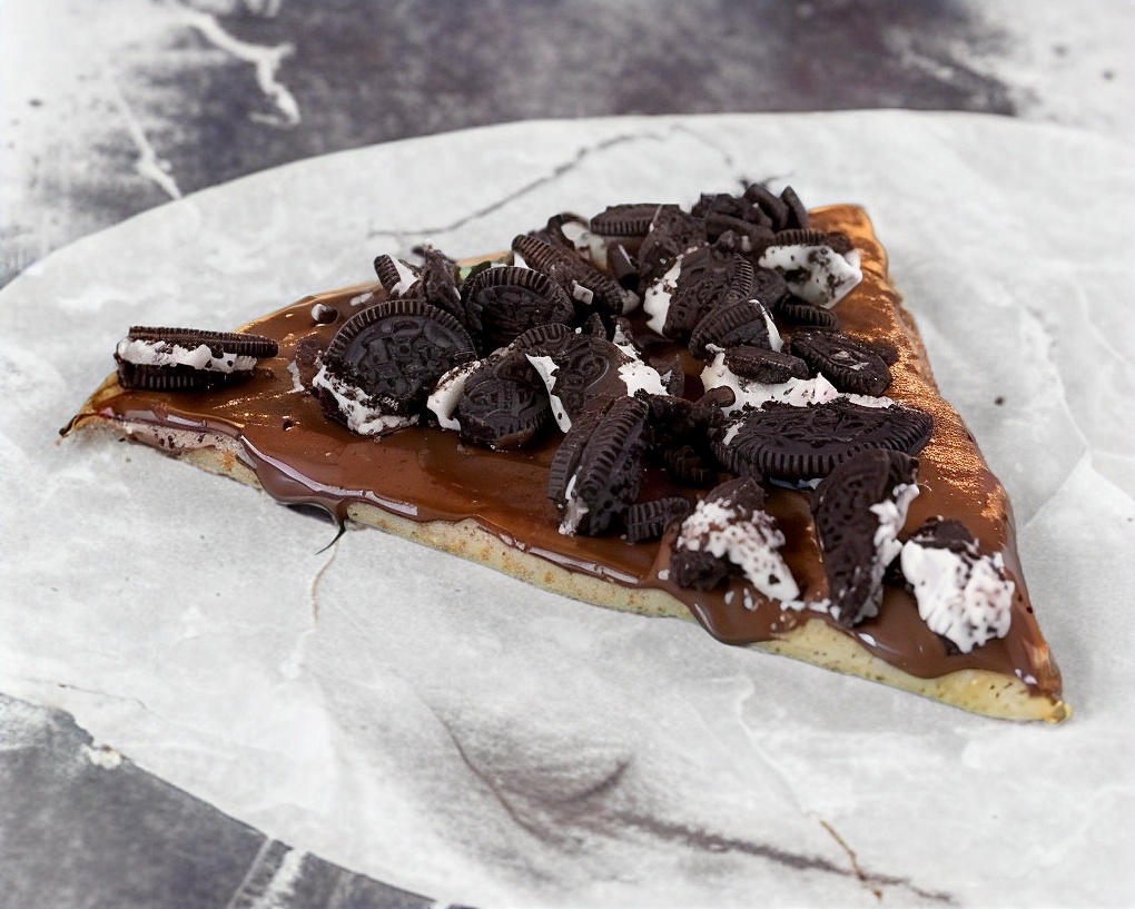crepa rellena de queso philadelphia cubierta de nutella y galleta oreo