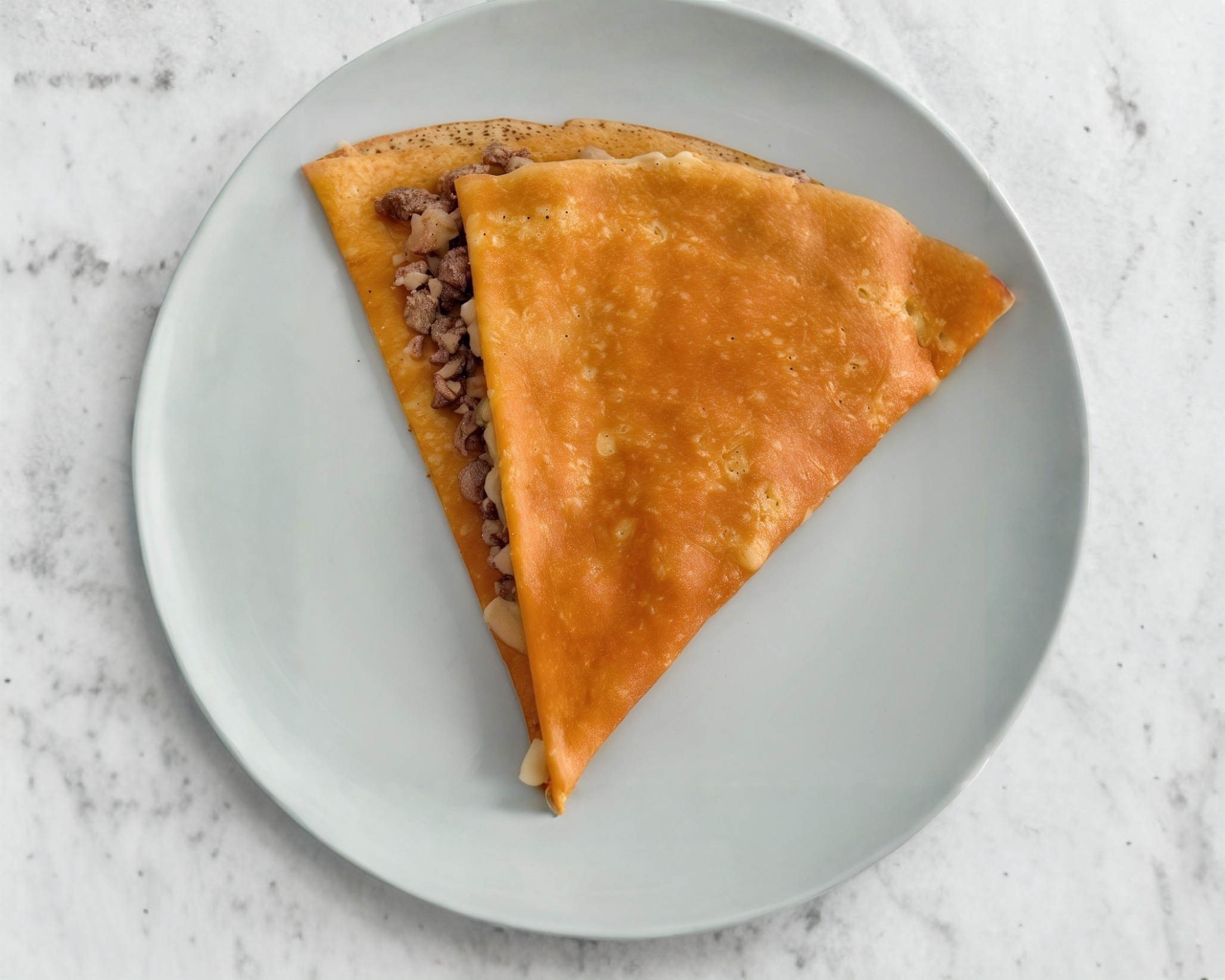 crepa rellena de queso manchego, pastor y trozos de piña