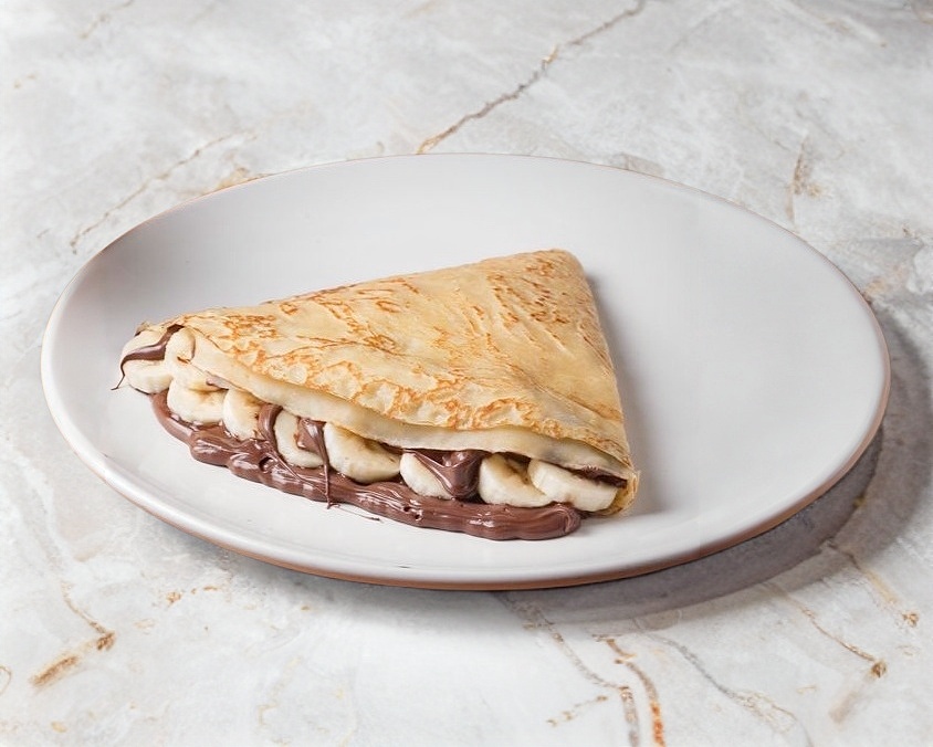 crepa rellena de philadelphia cubierta de nutella y platano
