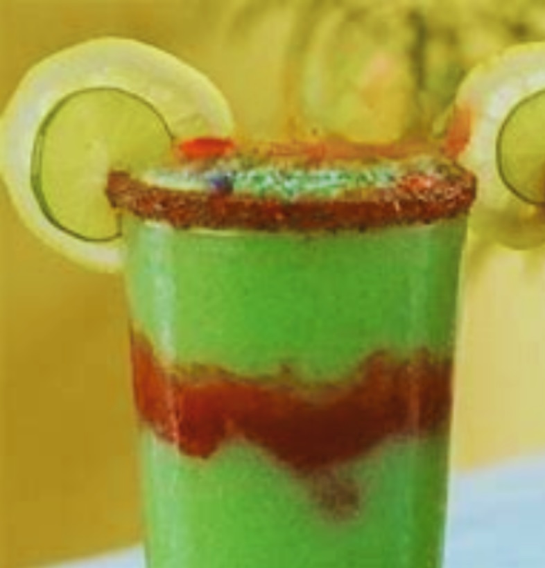 Bebida fría, base de agua, concentrado de pepino limón, licuado con hielo, chamoy, tajín y miguelito, 16oz
