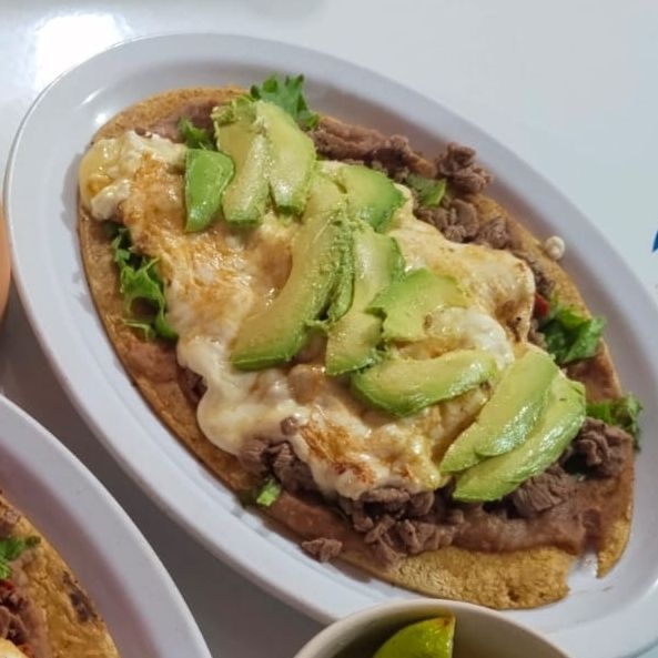 Telera frijoles mantequilla cebolla con chipotle jitomate aguacate y queso