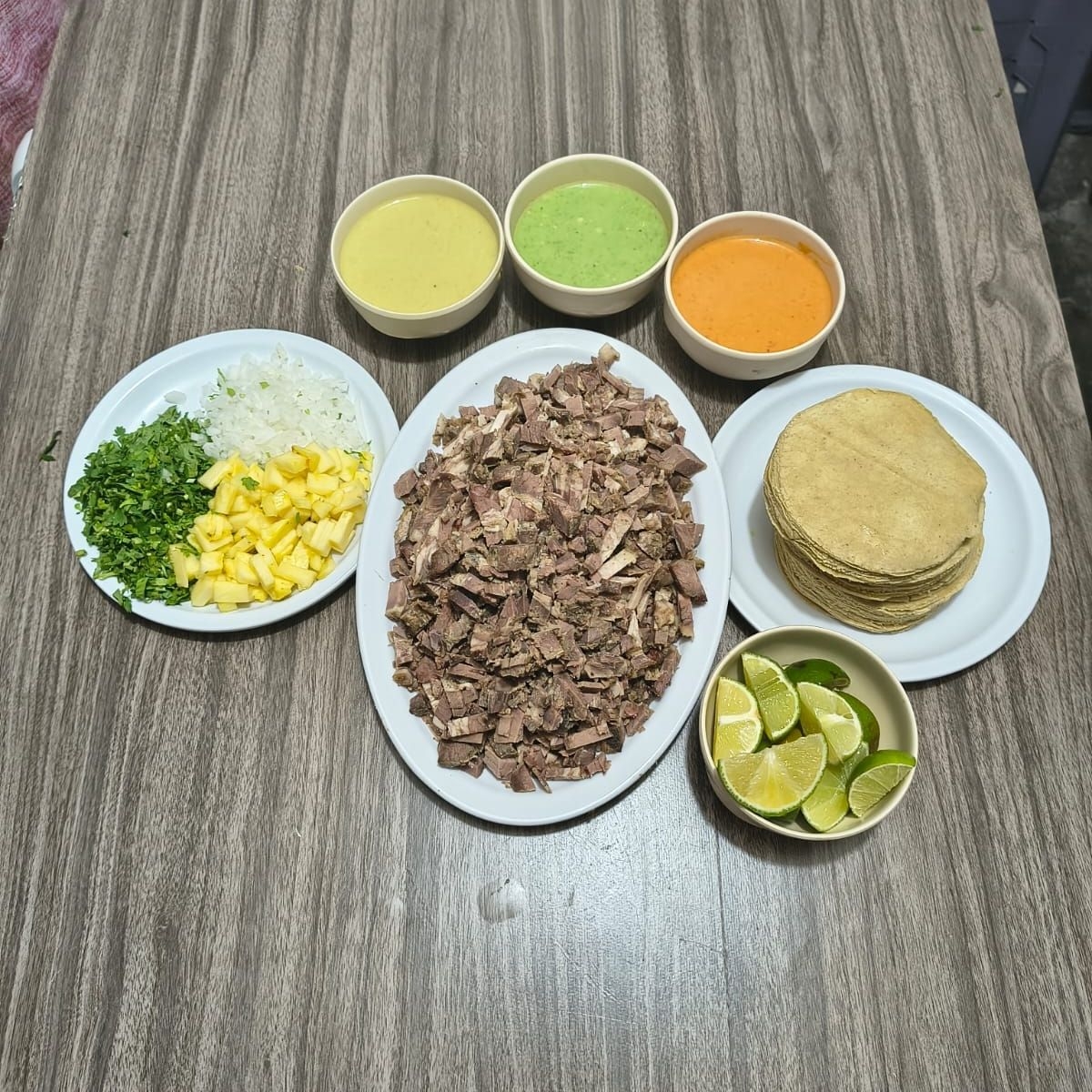 Orden de 5 tacos de suadero cebolla cilantro piña, salsa aparte
