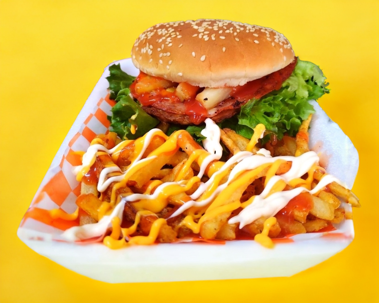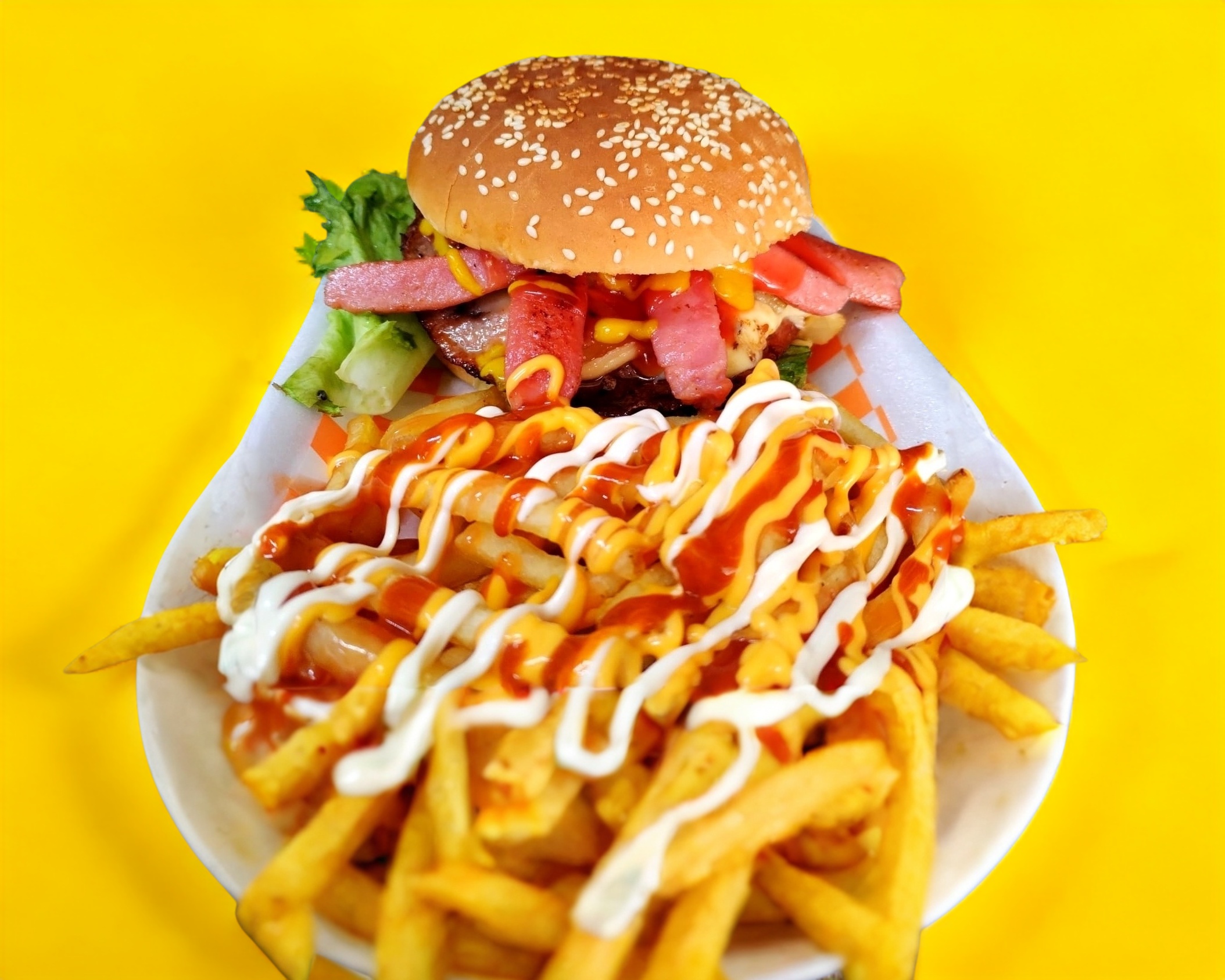 HAMBURGUESA DOBLE CON PAPAS A LA FRANCESA