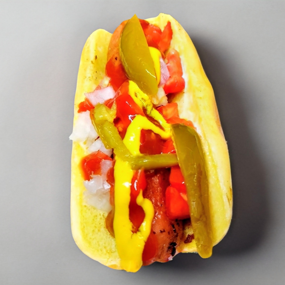 PAN, CARNE, QUESO AMERICANO,JAMON,QUESO GOUDA , SALCHICHA ,PIÑA, JITOMATE,LECHUGA ITALIANA,PEPINILLOS,MOSTAZA,CATSUP Y MAYONESA
