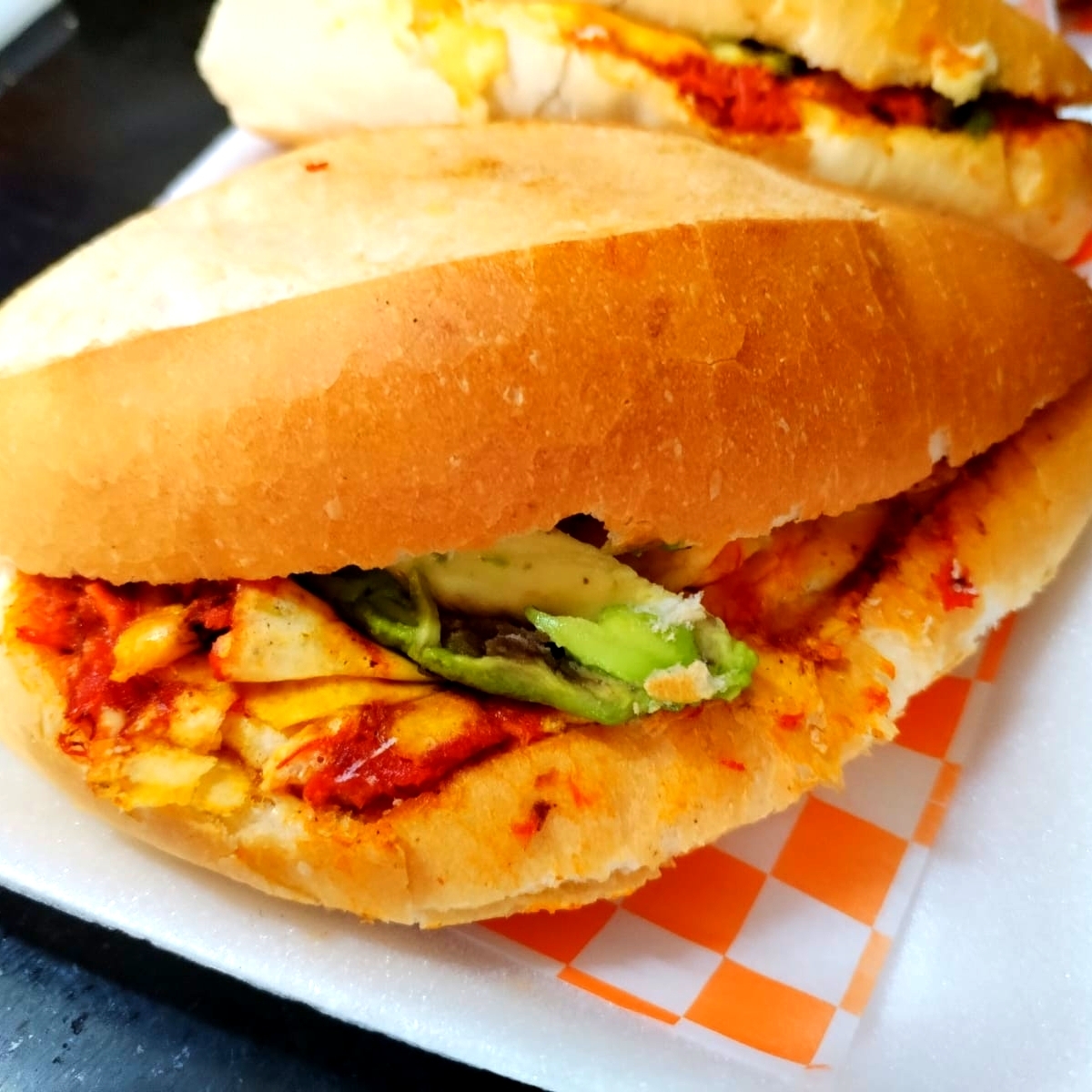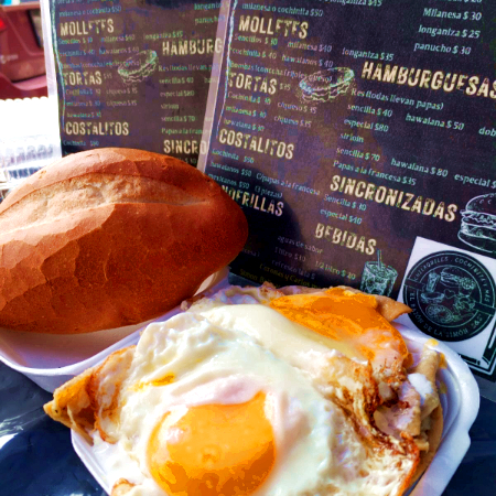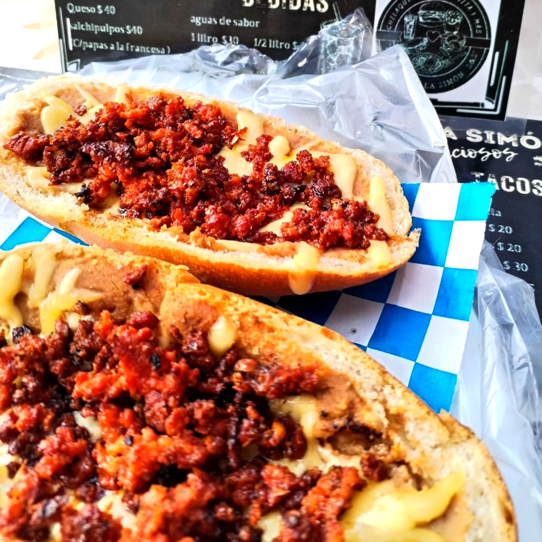 BOLILLO ,FRIJOLES,MAYONESA,JITOMATE,AGUACATE,LONGANIZA,CHILES EN VINAGRE,QUESO GOUDA.