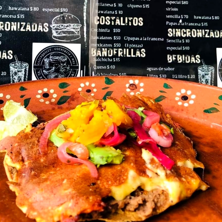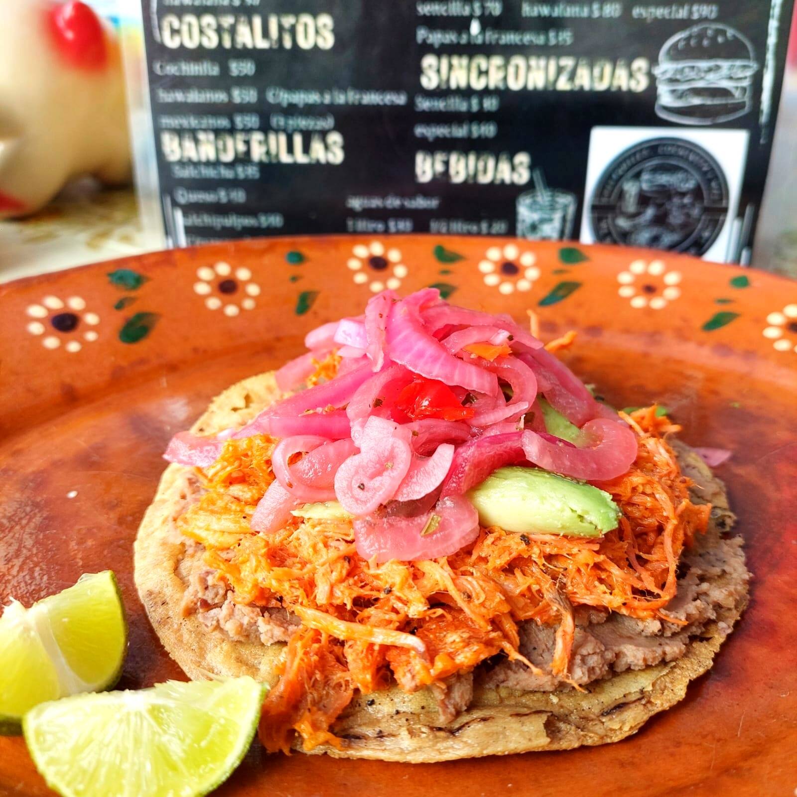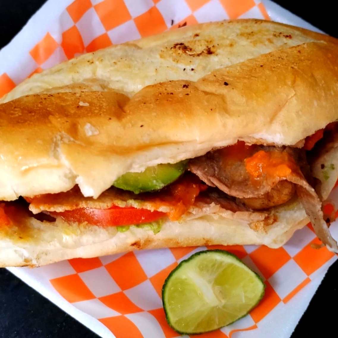 BOLILLO ,FRIJOLES,COCHINITA PIBIL,AGUACATE,QUESO GOUDA,CEBOLLA MORADA CON HABANERO