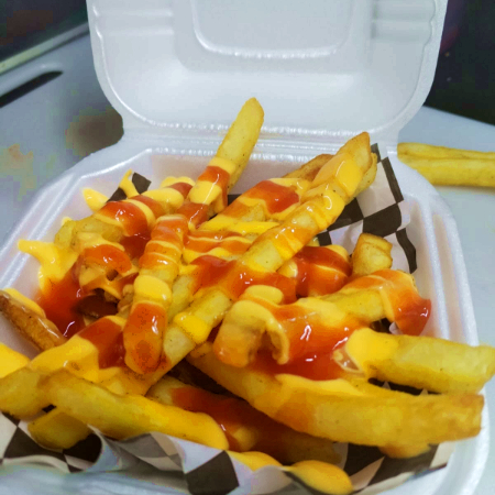 DOMO DE PAPAS A LA FRANCESA ACOMPAÑADAS DE CATSUP,QUESO AMARILLO LIQUIDO,MAYONESA Y SALSA