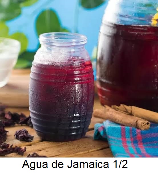 1/2 litro de agua natural sabor jamaica con azúcar.
