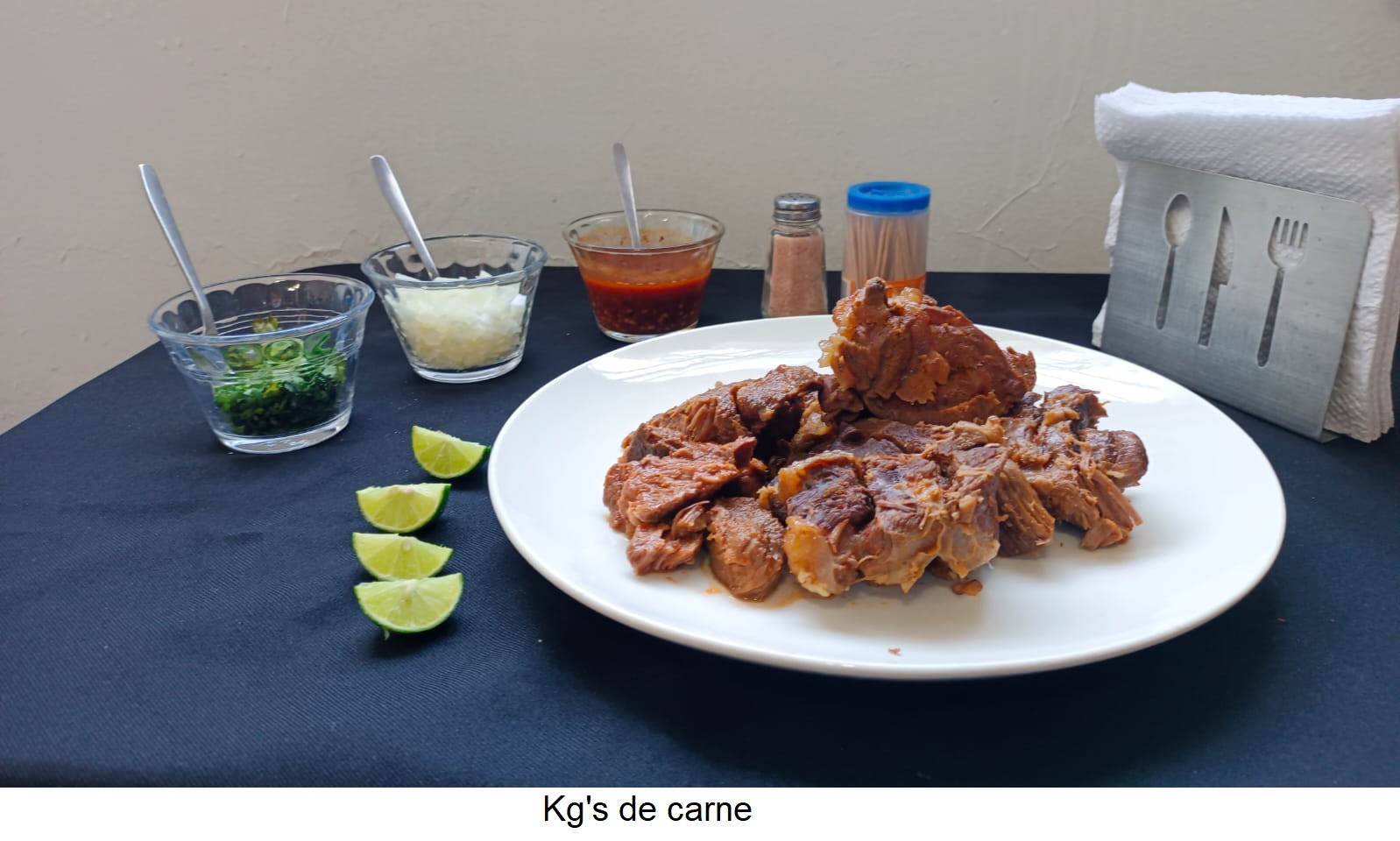 Carne a escoger por el cliente incluye verduras, limones, salsa y tortillas.