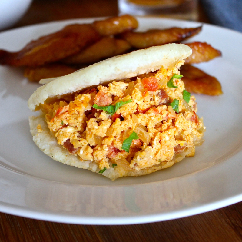 Huevos Perico con Arepa y Arroz