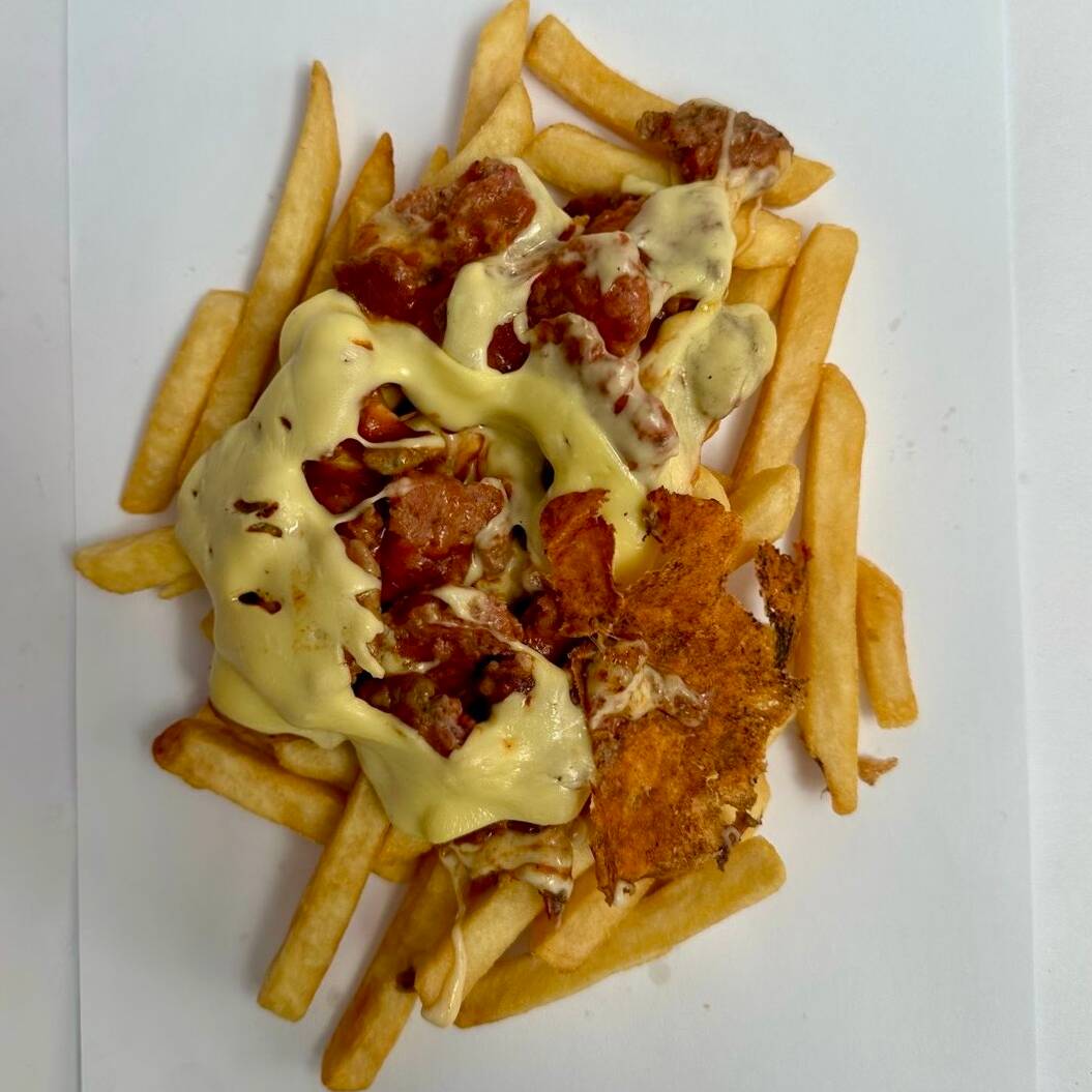 PAPAS A LA FRANCESA CON CARNES DE RES, SALSA DE TOMATE Y DOBLE QUESO 700GR.