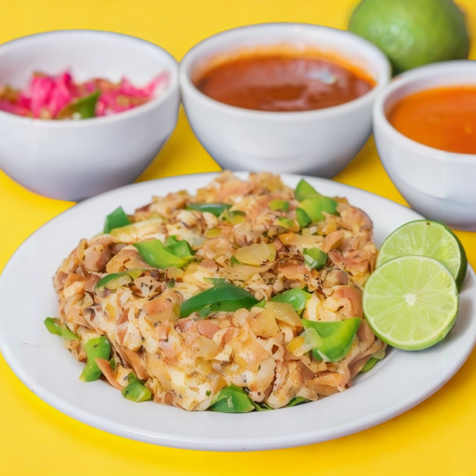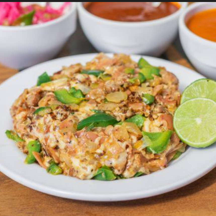 "Pionero" orden familiar 6 personas, 6bebidas y frijoles charros, ingredientes pionero: chuleta, tocino, jamón, cebolla, chile morrón, queso y 1 kg de tortillas.