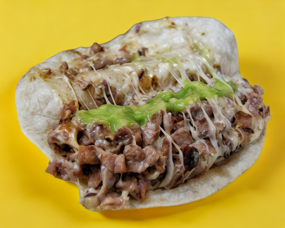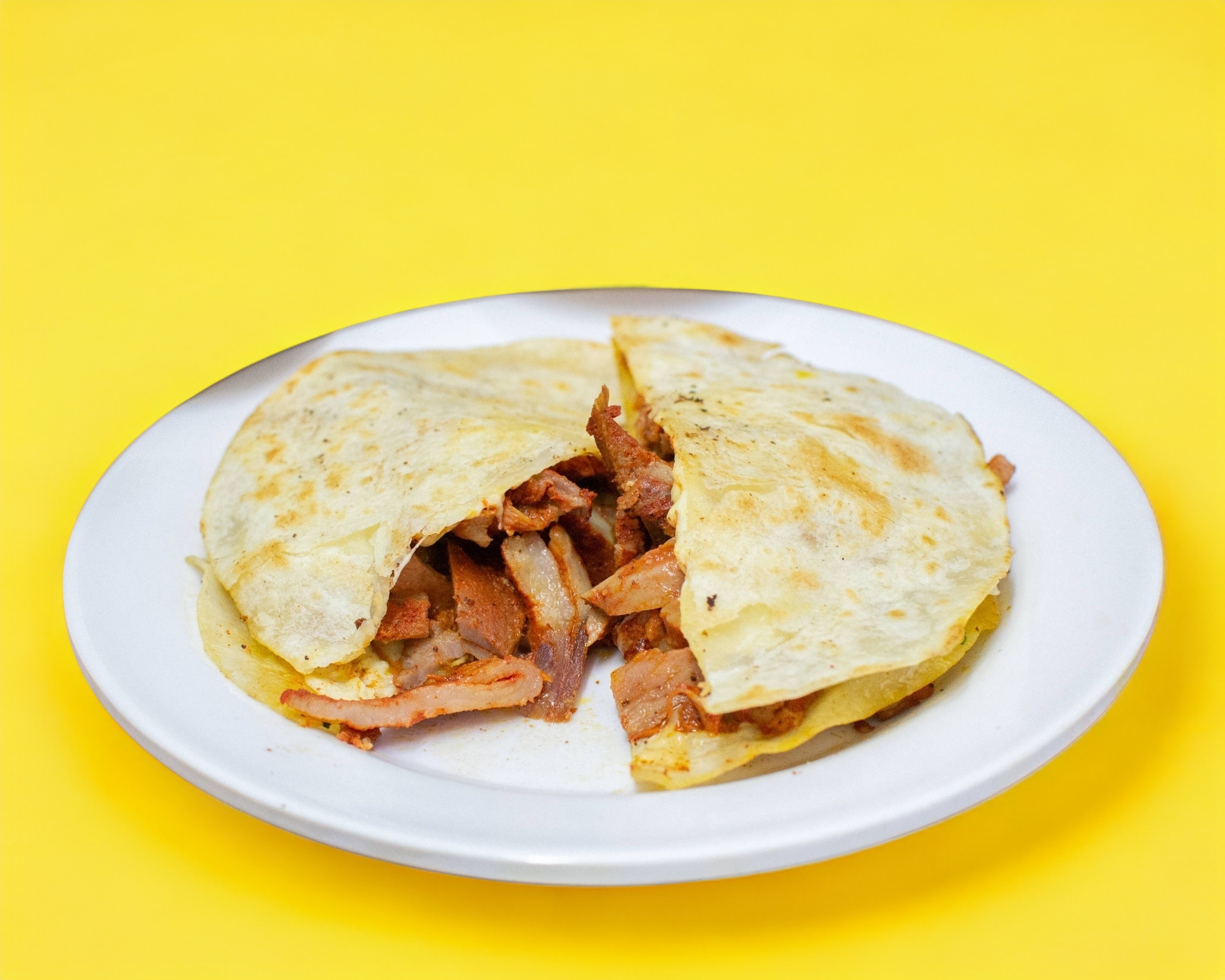 Pastor con queso con doble tortilla de harina.