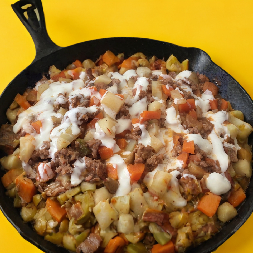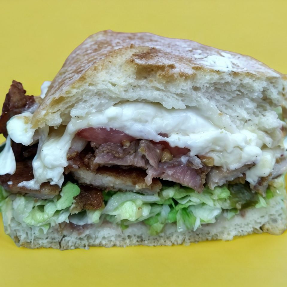 Suadero preparado con jamón tocino, cebolla, morron y su especial queso. Sabor unico
