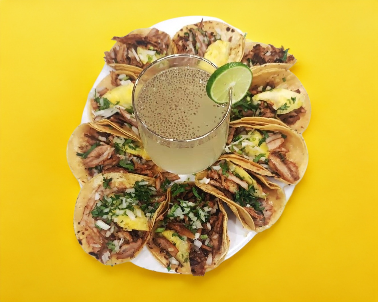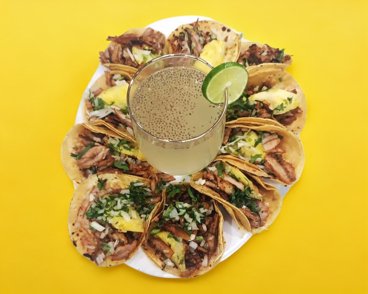 Agua de Limón con Chía*1 + Taco de pastor*9