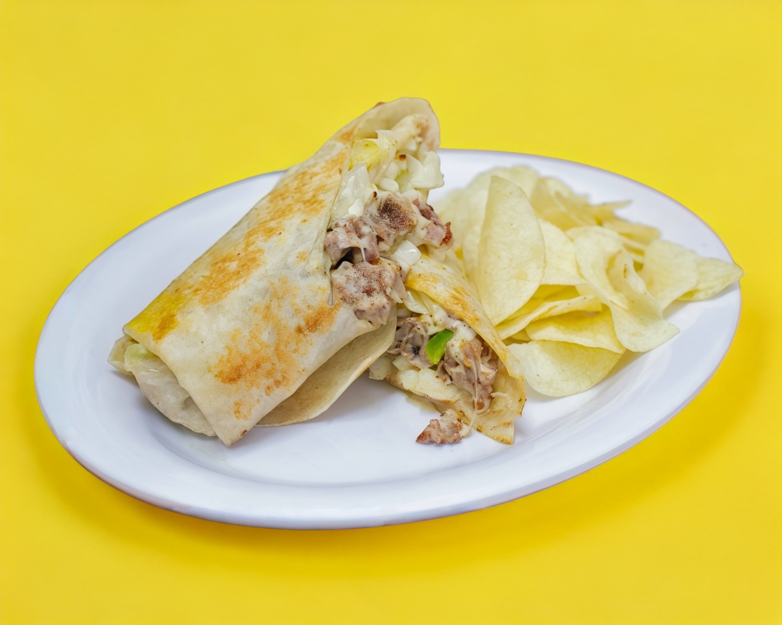 Jugosa carne y queso en mega tortilla de harina, frijoles, lechuga, deliciosas salsas.