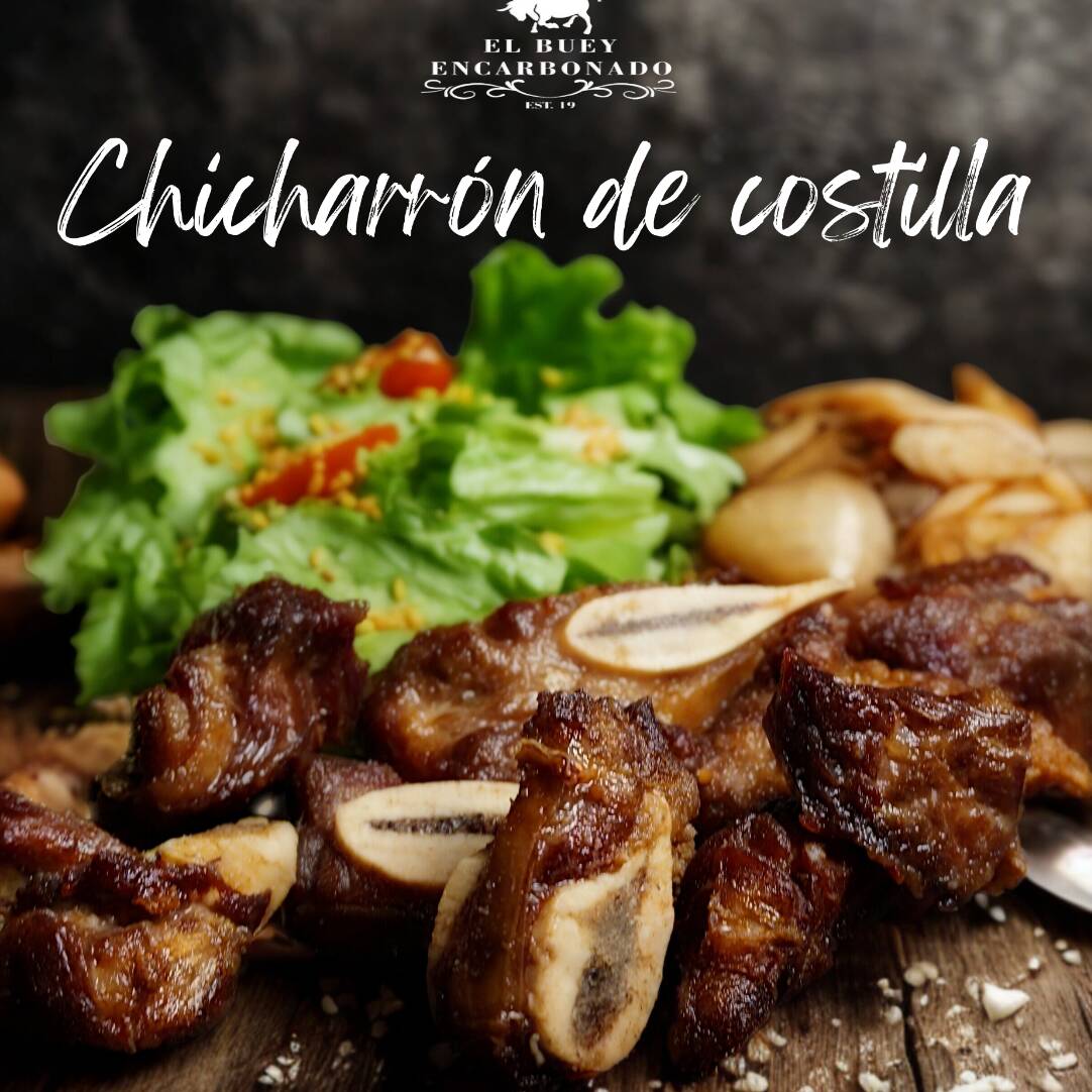 Chicharron (200grs crudo), ensalada de lechuga, guacamole, limón y cebollitas cambray.