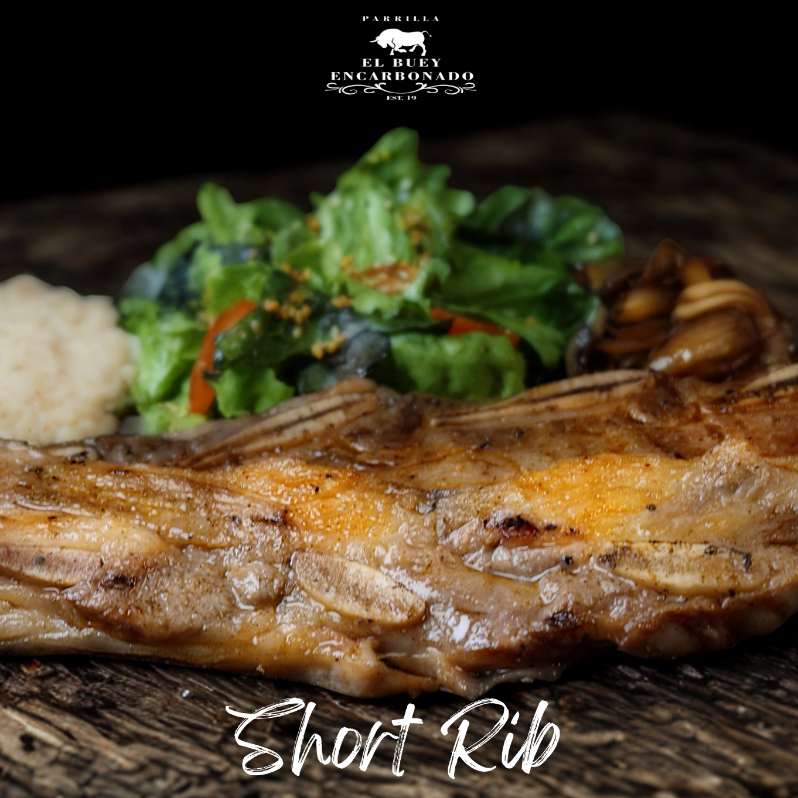 Short rib (450grs crudo), ensalada de lechuga, guacamole, limón y cebollitas cambray.