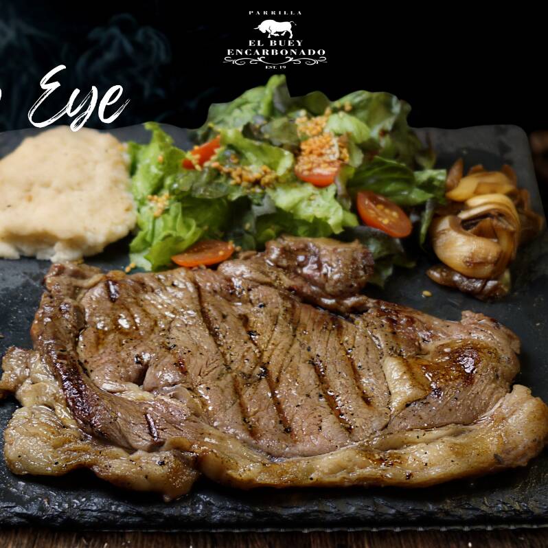 Rib eye (250grs crudo), ensalada de lechuga, guacamole, limón y cebollitas cambray.