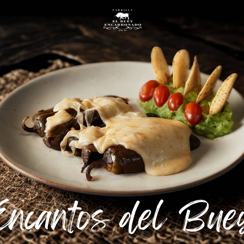 Chiles cuaresmeños toreados, queso gouda, guacamole sin picante, totopos nacho.