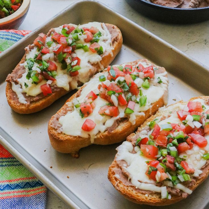 3 MOLLETES, ACOMPAÑADOS DE FRIJOLES, QUESO MANCHEGO Y PICO DE GALLO. A ELECCION DE UNA PROTEINA