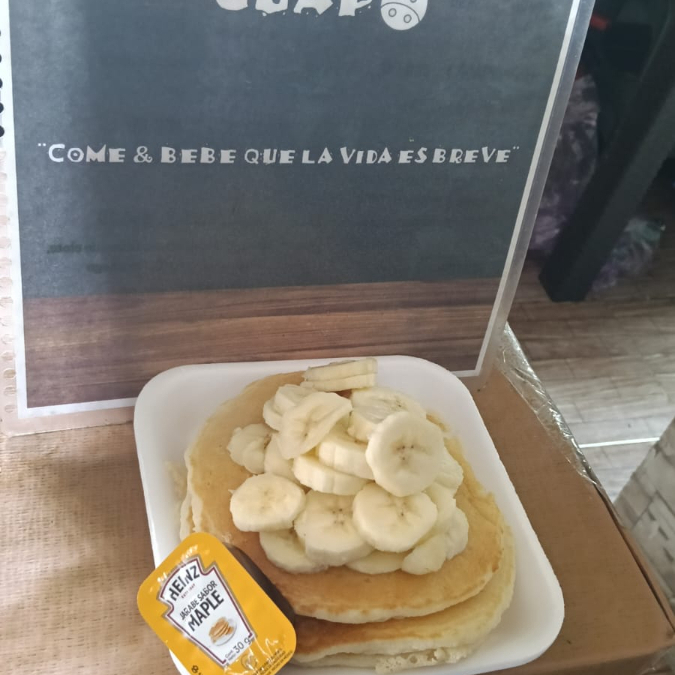 Huevos al gusto, acompañado de frijoles refritos, un bolillo y cafe americano.