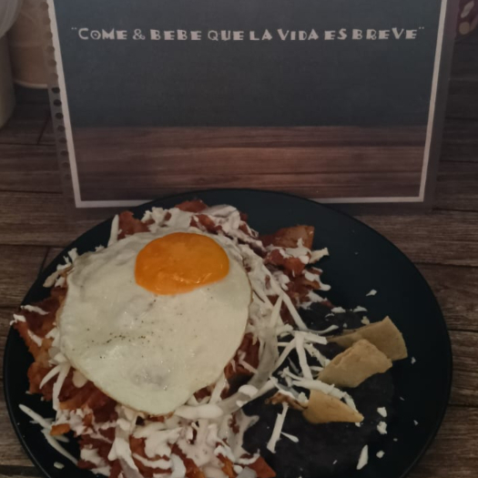 Preparados con frijoles refritos y totopos bañados en salsa de su elección, queso fresco, crema acida, cebolla y una pieza de bolillo