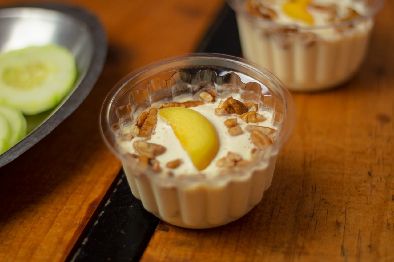 Deliciosos duraznos con crema dulce y trocitos de nuez