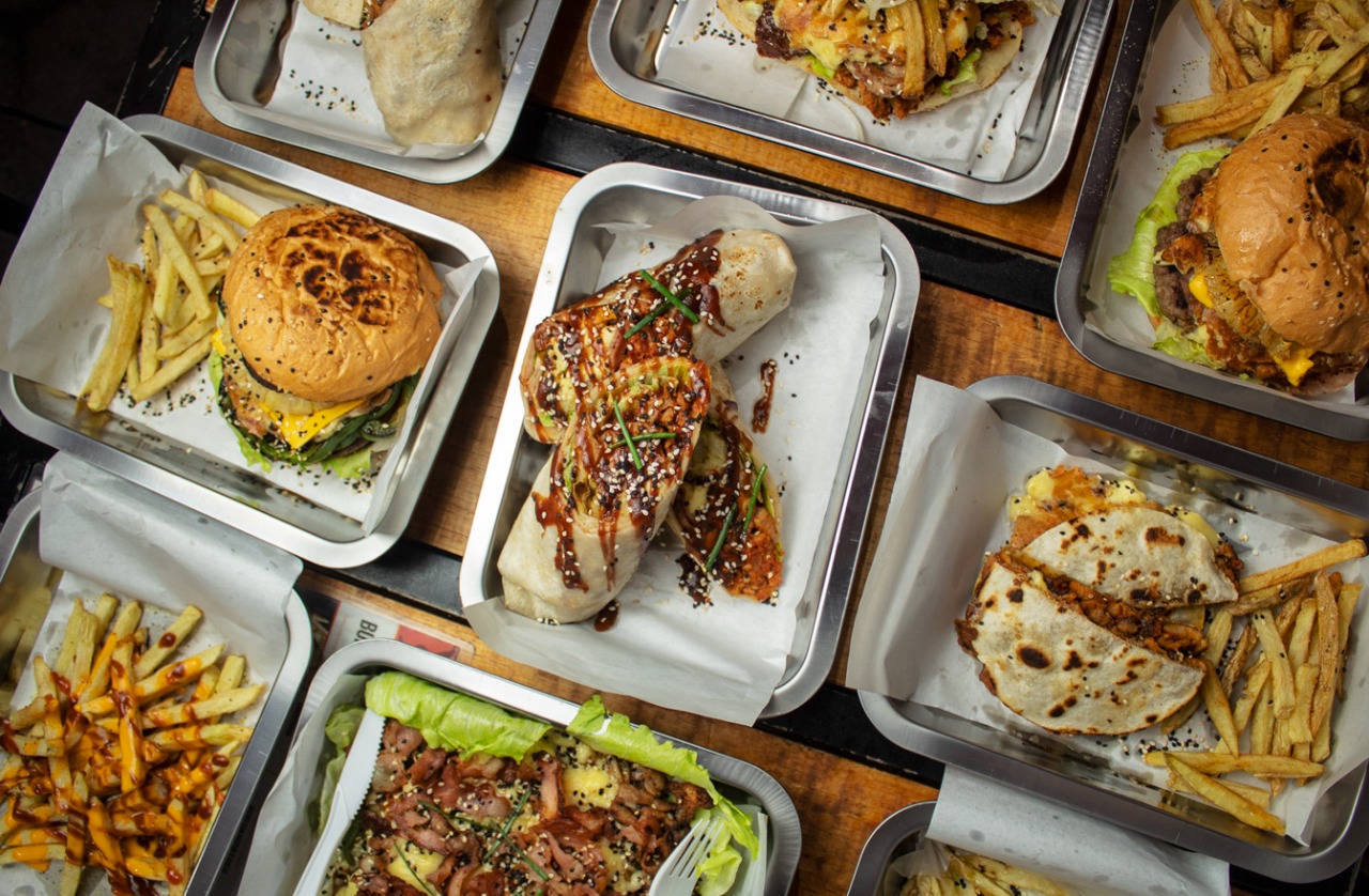5-6 Tacos tortilla grande aprox. Bistec, jamón, tocino, pimiento morrón, cebolla, champiñones, queso.