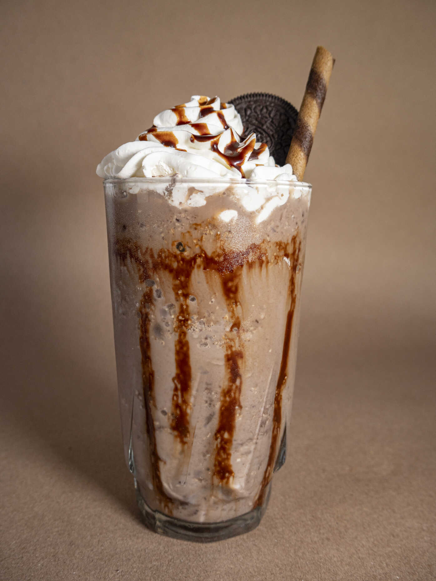 Bebida cremosa y espesa hecha con helado de galleta, leche y crema batida